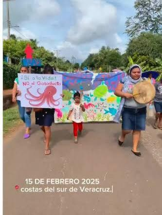 A una hora de distancia, en el municipio de Pajapan, pescadores y campesinos marcharon el pasado quince de febrero desde la población de Playa Linda a San Juan Volador, en protesta contra el gasoducto “Puerta al Sureste” construido por la empresa norteamericana TC Energy, bajo contrato con la Comisión Federal de Electricidad.