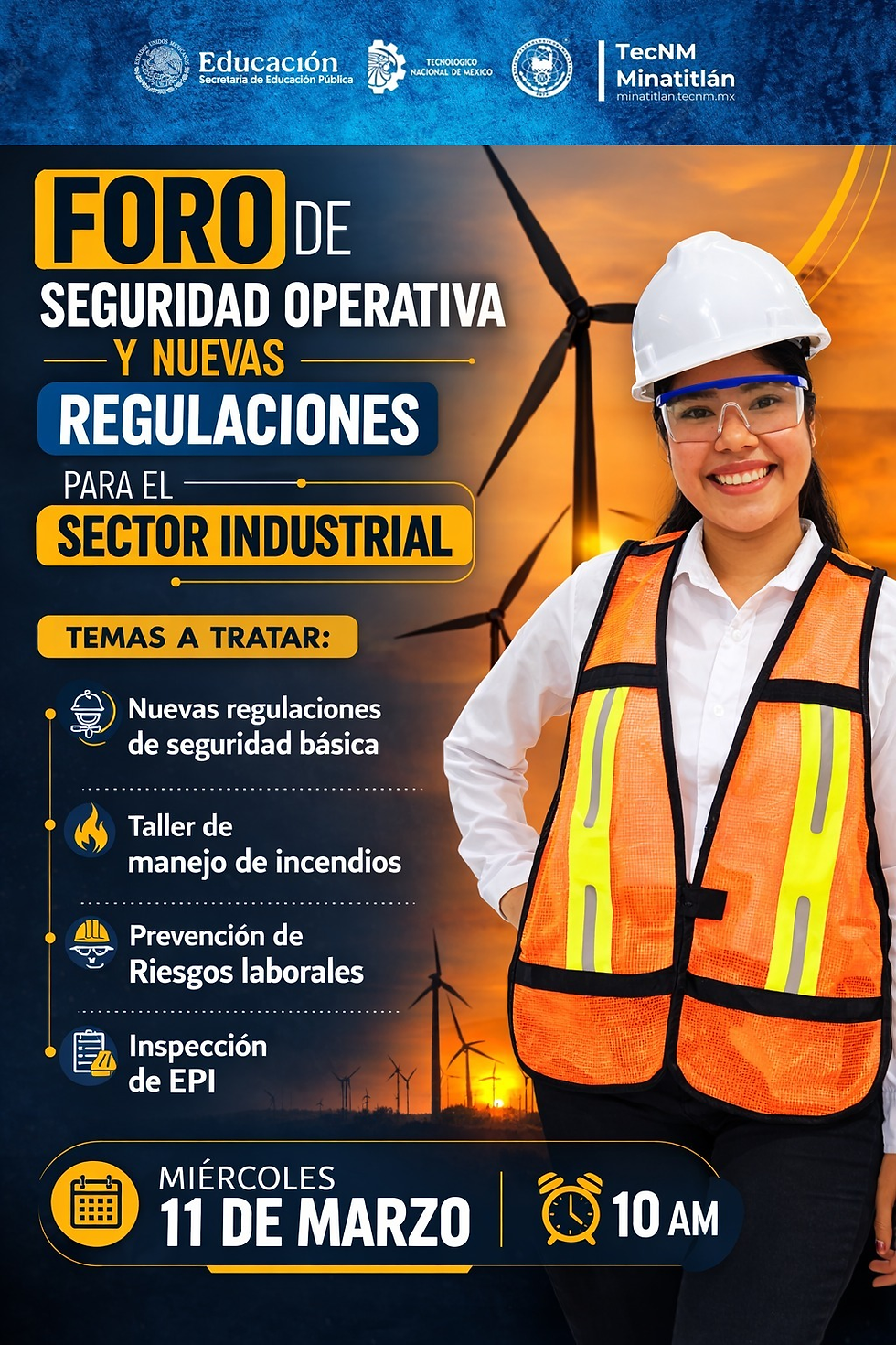 El #TecNM – Minatitlán te invita a participar en este espacio de aprendizaje y actualización donde conocerás las nuevas normativas y prácticas clave para fortalecer la seguridad en el sector industrial.